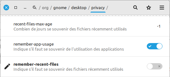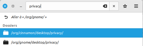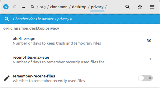 Sélectionner OFF pour chacune des clefs Cinnamon et Gnome
