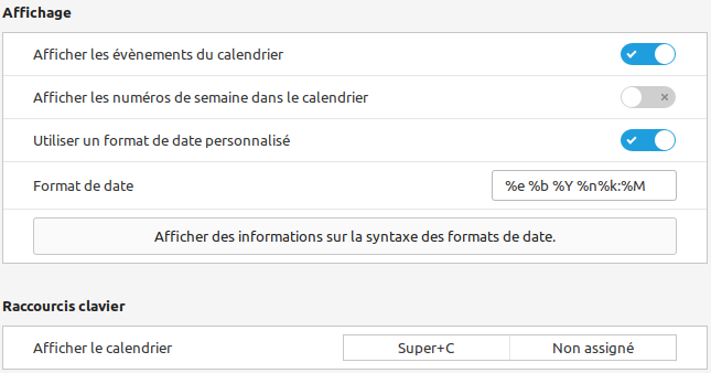 Modifier affichage Heure dans l’applet Calendrier: %e %b %Y %n%k:%M